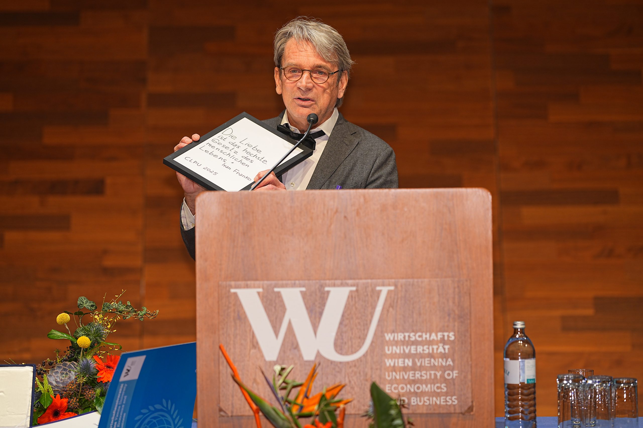 The ceremony took place on March 25, 2026 at WU Vienna. WU Rector Rupert Sausgruber spoke about the importance of long-term, committed partnership, particularly at a time when both universities and civil society are navigating real challenges. The evening also featured laudatory speeches by Professor Sigrid Stagl and Lukas Kvokacka, Director of Slovak NGO Barlička, reflecting the breadth and depth of Boris’ impact across the region. We congratulate Boris warmly on this well-deserved recognition, and look forward to continuing our work together.